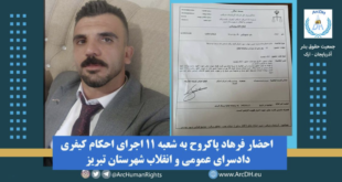 احضار فرهاد پاکروح به شعبه ۱۱ اجرای احکام کیفری دادسرای عمومی و انقلاب شهرستان تبریز
